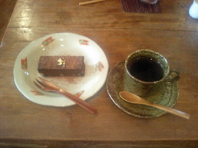 有機コーヒーと豆腐ガトーショコラを頼んでみた、美味しかった\(^o^)/