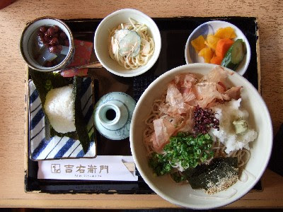 そのまま大宰府のJR線の駅まで行って、駅近くの吉右衛門というお店で蕎麦を食べました。蕎麦セットにはオニギリがついてきます。が...中身の具の無いオニギリだったのでビックリ(゜o゜)