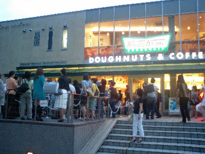 クリスピー・クリーム・ドーナツ(Krispy Kreme Doughnuts)でも買ってみようかと思い店に寄ってみると...超行列。まだ1時間以上も並ぶようです。