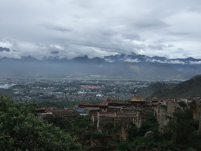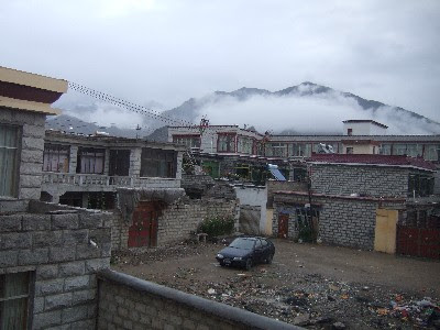 セラ寺も入り口からちょっと歩くのですが、その頃には雨も大分やんできました。そして、15時から始まる問答修行を見るために会場を探して行くと...おぉー、Tさんがいるじゃないですか。そして、誰かと話していました。近づいていくと、話しているのは韓国人で仏教を教えている大学の教授のようです。そして、来年1年間ラサの大学に招待されて勉強しにくるようです。