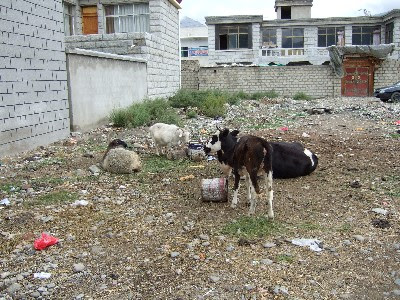 私は10時にホテル(錦誠賓館)を出発。ホテル前には...昨日と同じで牛が居るし...。どこから湧いて出てきてるんだろう。ちゃんと乳搾りされてるんですよねぇ。