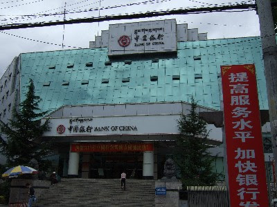 下山したところからタクシーを広い15元で向かったのが中国銀行です。(てか...タクシー相乗りされたんですけど...)。ラサで唯一両替ができる銀行です。もちろん寄ったのは両替するためです。 並んでいた外国人の人で100元札を300枚持ってた人がいたなぁ。同時に持っていたのが開業許可書のようでした。ラサで開業するのでしょうか?