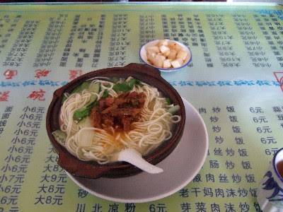 銀行を後にし、近くの溢碗面(たぶんチェーン店)で砂鍋牛肉面を食べました。牛肉っぽくない感じでしたねぇ。