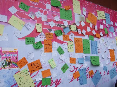 セラ寺からは市バスでラサ市内に向かいました。ここでも、韓国人の教授と一緒したのですが途中で降りていきました。その後、町の中で降りたのですが、丁度目の前のショッピングセンターでチャイニーズバレンタインのイベントが開かれていました。皆さんの愛のメッセージが英語と中国語で書いてありました。一緒に町を周っていたTさんは「恋人ぼしゅう中」というメッセージを記入して貼ってもらっていました。「ぼしゅう」という部分が日本語なのがポイントですね♪