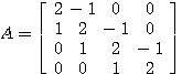 #include <stdio.h> #define N 4 double DL[N-1],D[N],DU[N-1],B[N]; int main(void) { int i; long int n=N,nrhs=1,ldb=N,info; DL[0]=1.;DL[1]=1.;DL[2]=1.; D[0]=2.;D[1]=2.;D[2]=2.;D[3]=2; DU[0]=-1.;DU[1]=-1.;DU[2]=-1.; B[0]=0.;B[1]=2.;B[2]=4.;B[3]=11.; dgtsv_(&n, &nrhs, DL, D, DU, B, &ldb, &info); for(i=0;i<N;++i) printf("%lf\n",B[i]); return 0; } |
